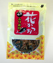 かつお水揚げ日本一の気仙沼で製造した、黒潮育ちの味付け花かつおふりかけ。ネーミング通りのカツオ節を薄く削った花かつおたっぷりのふりかけです。青野菜にかければお醤油いらず。きざみのり、ごまをブレンドした海の旨みが沢山詰まった味わい豊かなふりかけ。ご飯や豆腐料理、オニオンスライス、お好み焼きにそのままかけても! 価格:花かつおふりかけ70g…432円(内税32円) |